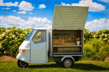 Meet L’APE our vintage Piaggio Ape truck! Ape (AH-pay) means bee in Italian. Our truck is fitted with three taps that can dispense cold, bubbly Prosecco or any beverage for your choosing. You can even have two or three different beverages on tap. We are based in Greenwich, CT but can service the entire Tri State area.